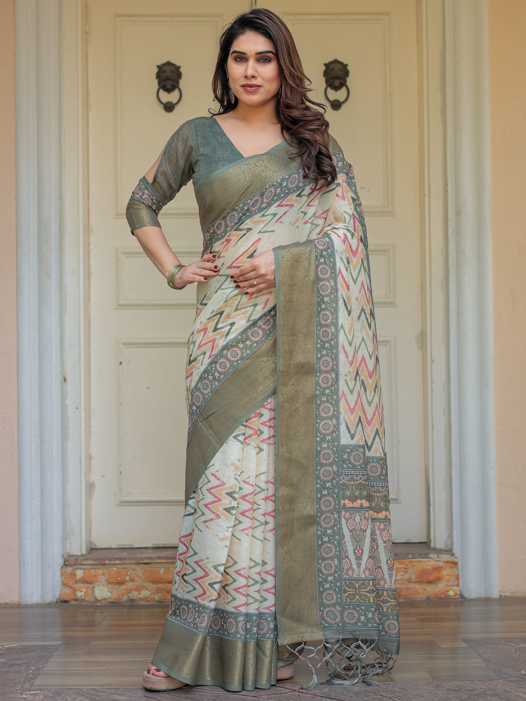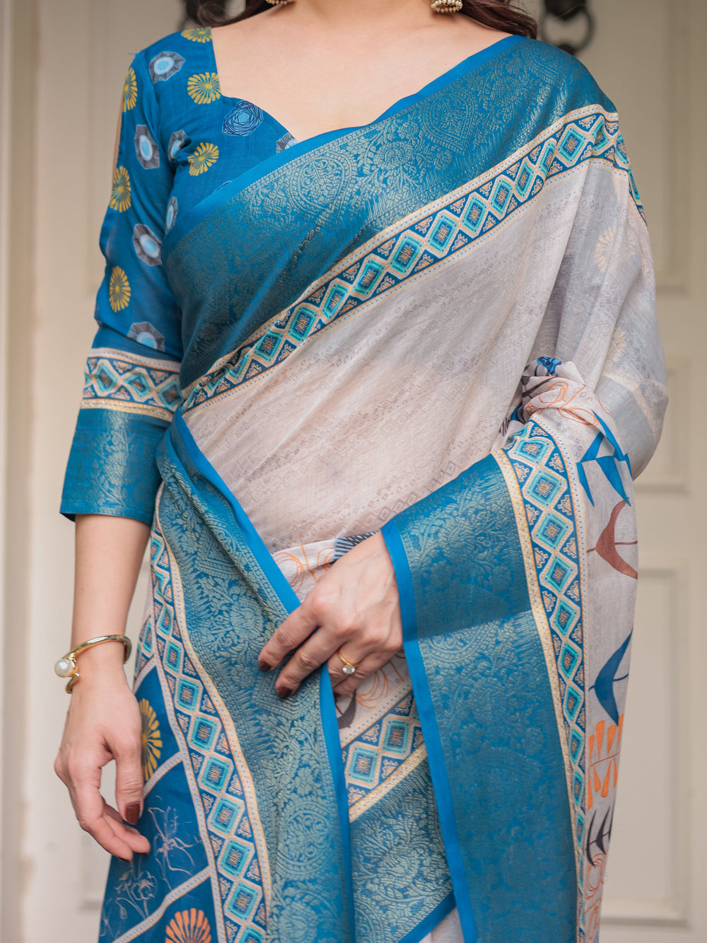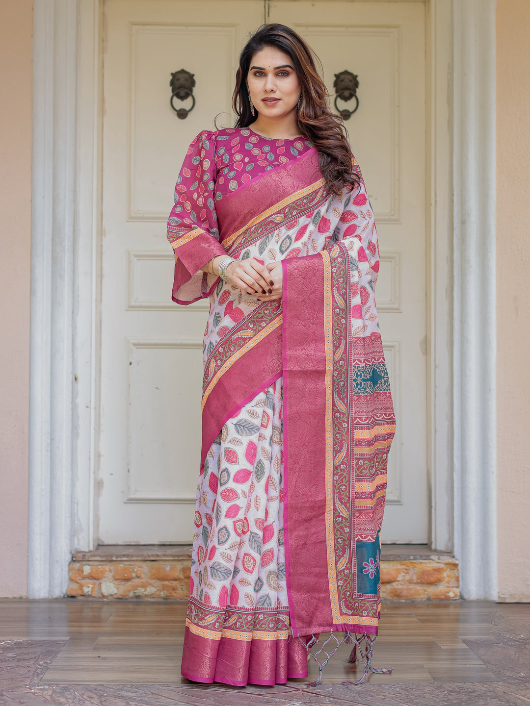Buy the Best Handloom Linen Printed Floral Sarees for Every Occasion