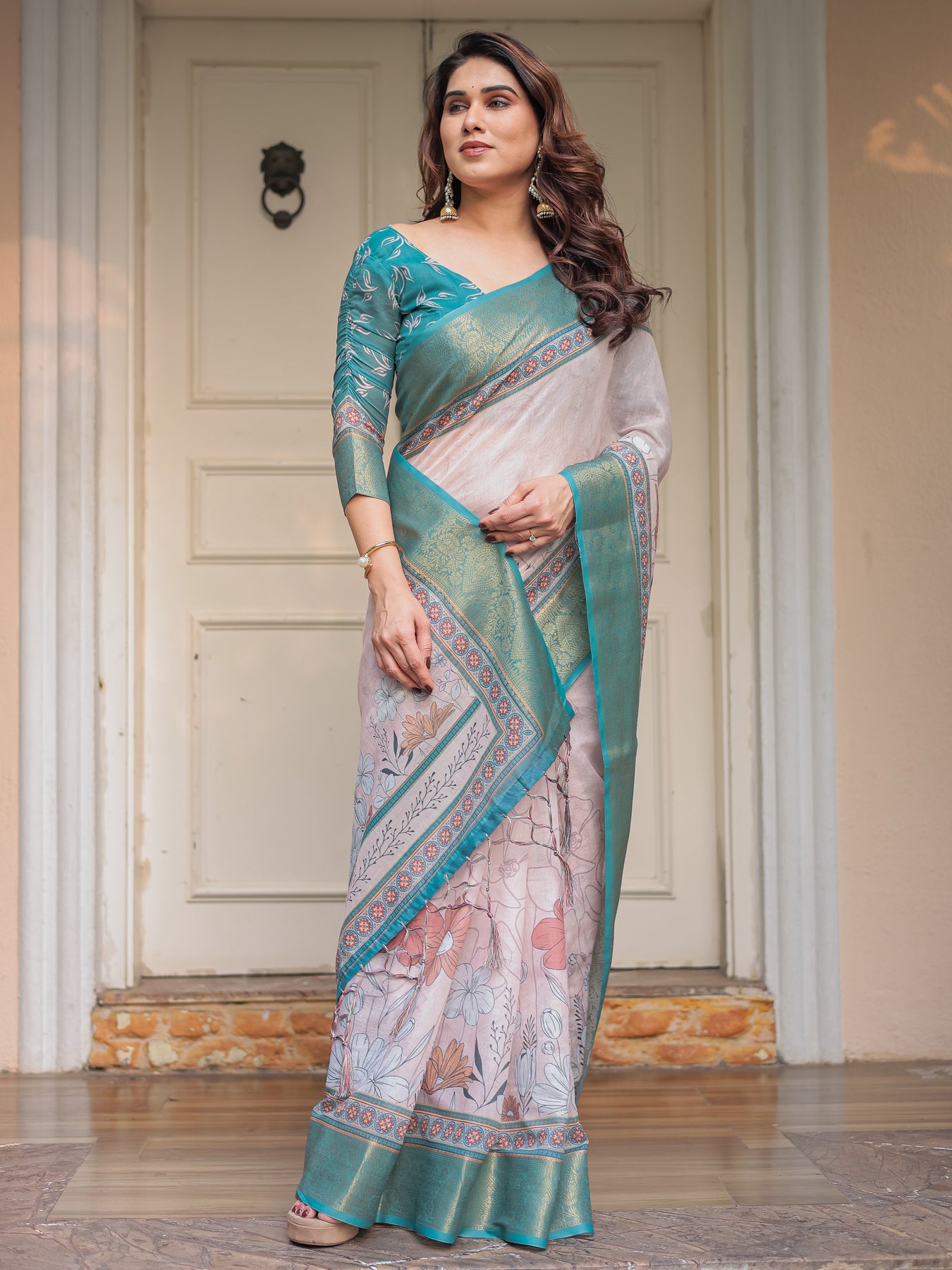 • Saree Fabric: Linen Silk / Cotton Silk Blend