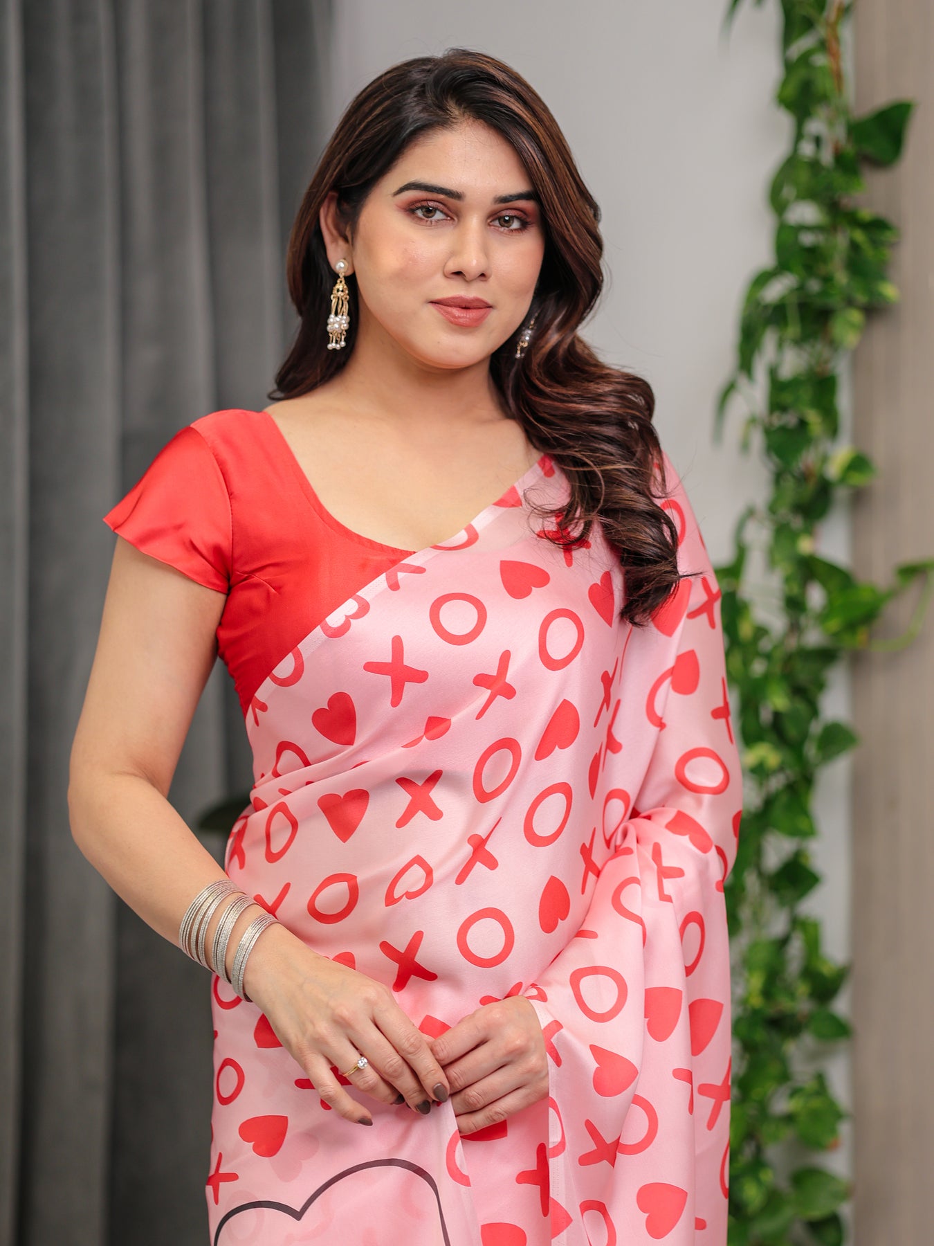 • Saree Color: Blush Pink with Coral & Red Love Motifs