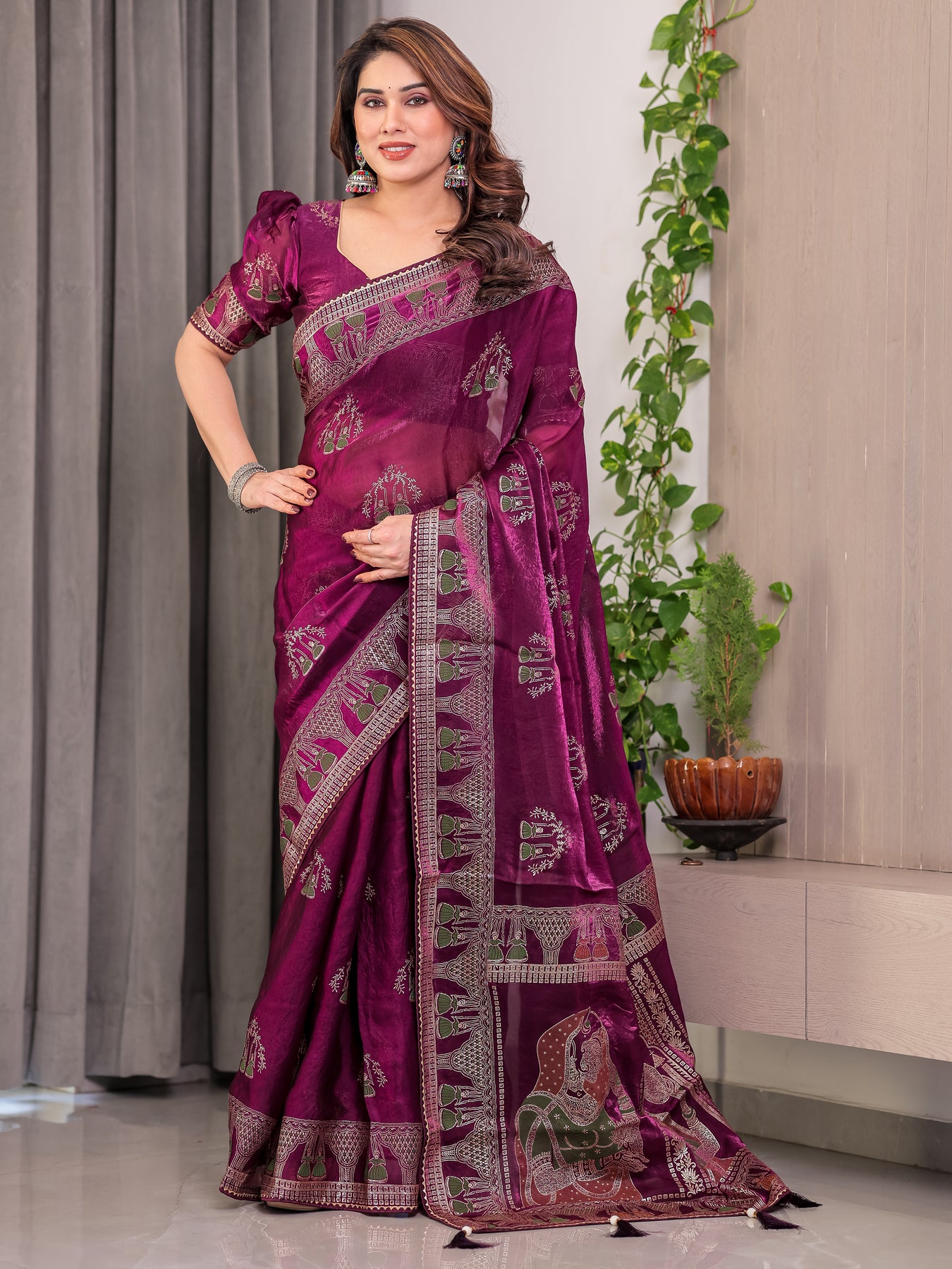 Saree Color: Wine / Plum Purple